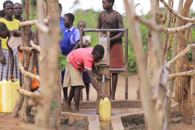 Mit Hilfe von Bohrlochtechnologie sichern wir sauberes Trinkwasser für Familien, die so davon befreit werden, durch Kochen von Wasser sich Trinkwasser zu besorgen.